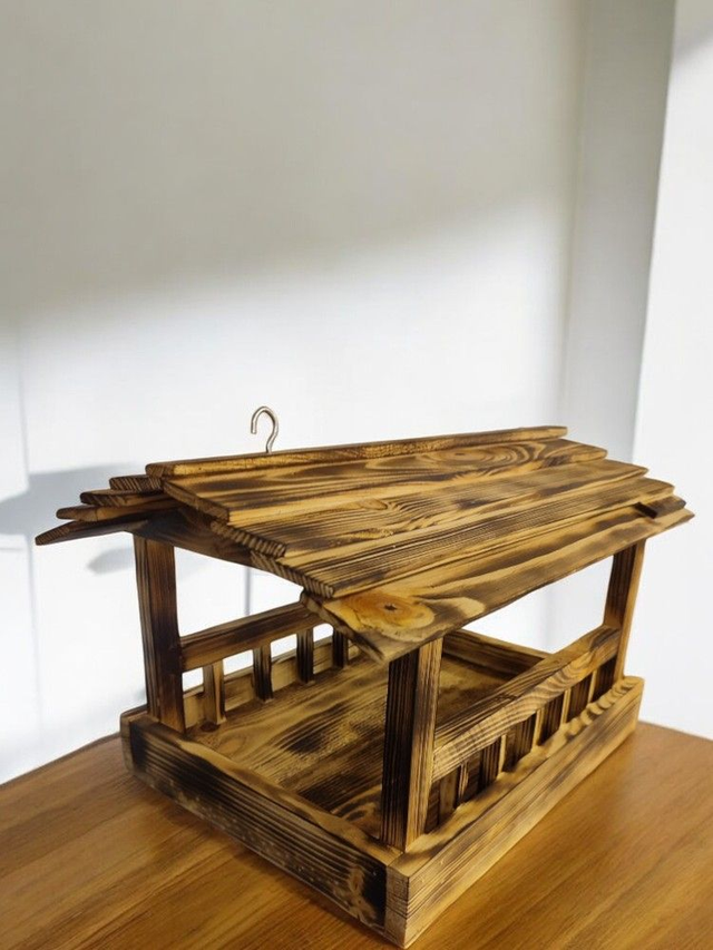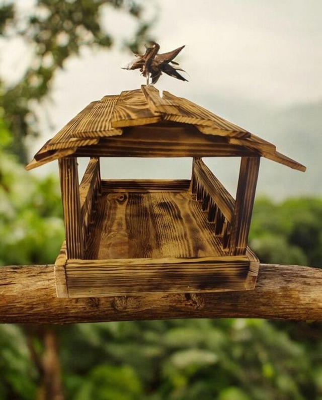 • Spadzisty dach: chroni pokarm przed deszczem i śniegiem.