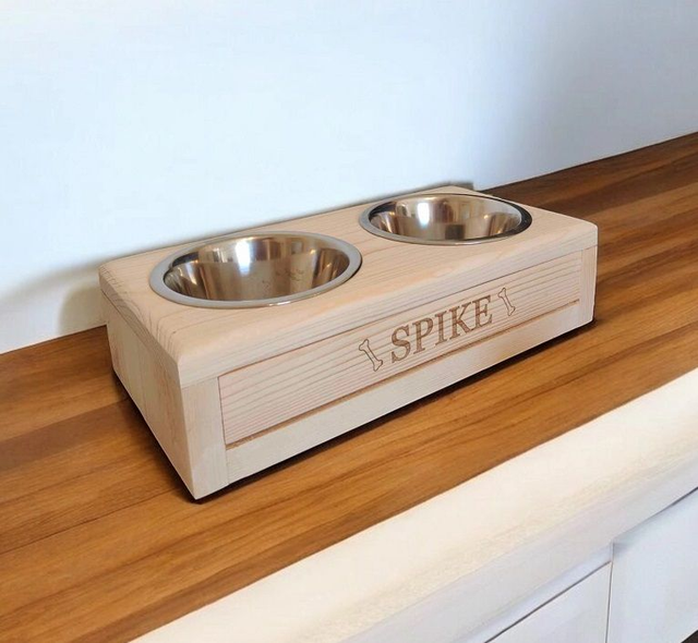 Podwójna Miska dla Kota/Psa Drewniana Elegancja